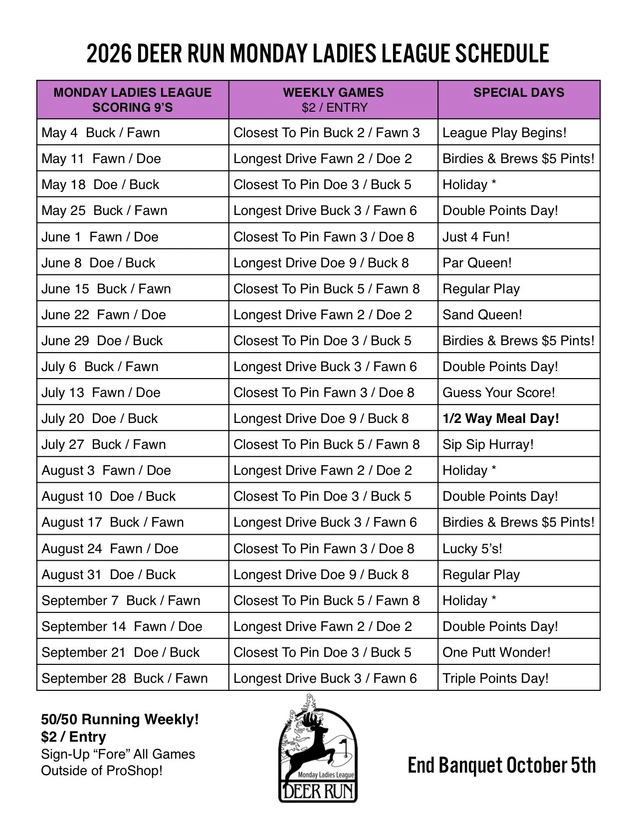 Welcome to the 2026 Deer Run Ladies League!